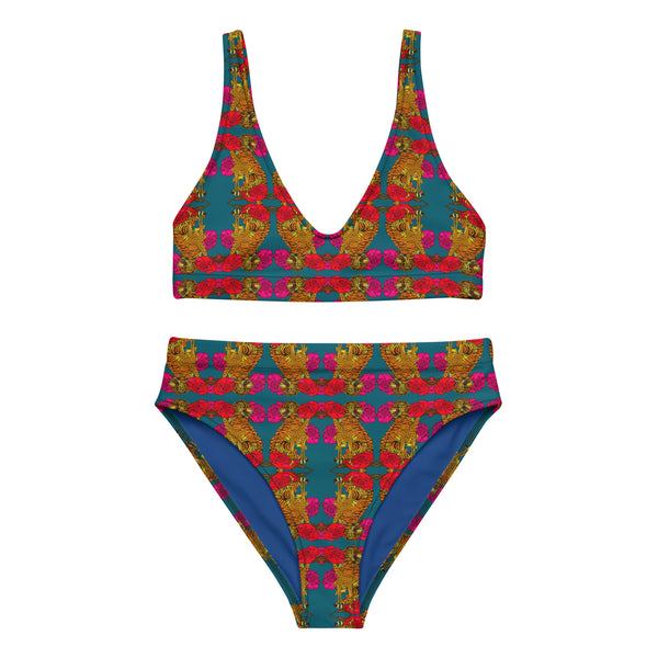 Our All-Over Print Recycled High-Waisted Bikini is destined to become the only swimsuit you want to reach for in your drawer! The bottoms are high-waisted, and the top has removable pads. Both come with a tear-away care label. These features make it comfortable and flattering on many different body types. The . Get it for yourself, or a friend,